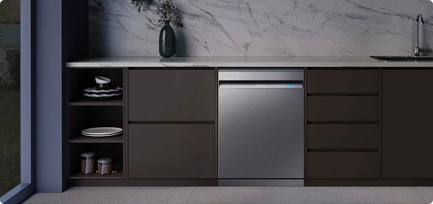 | 메탈 자연건조로 깔끔한 마무리 깨끗한 설거지의 마무리는 깔끔한 건조 아닐까요? 플라스틱 사용을 최소화한 메탈 재질 식기바구니로 물 맺힘 걱정을 줄여줍니다. 또 세척이 끝나면 자동으로 문이 열려 물기를 빠르게 건조시킵니다. | ![]() |