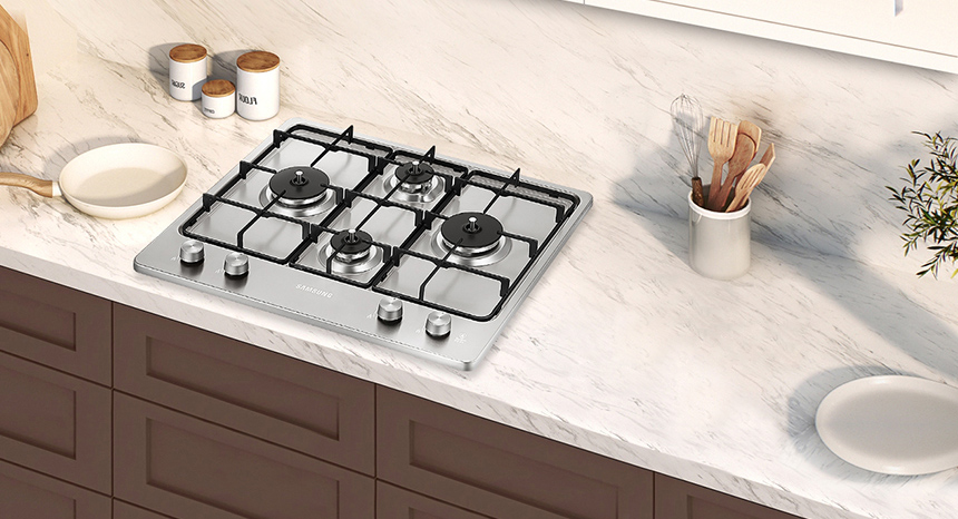 내구성이 뛰어난 고급 스테인리스 상판 상판에 적용된 SUS 304 스테인레스는 쉽게 녹스는 철 함유량이 낮고 내구성이 뛰어난 크롬과 니켈의 함량이 높아 고급 식기 및 조리기기에 많이 쓰이는 재질입니다. |