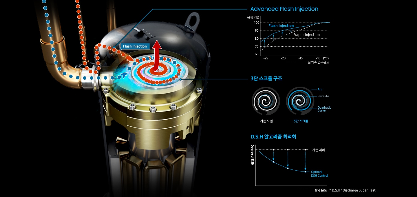 Advanced Flash Injection 기술과 3단 스크롤 구조로 구현한 압도적인 압축기 기술력으로