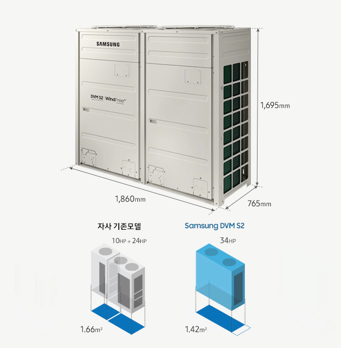 * 소형플랫폼은 기존 AM120NXVUHH1 대비 DVM S2 AM120AXVUHH1, 대형플랫폼은 기존 AM200NXVUHH1 대비 AM200AXVUHH1 의 열교환 전면면적을 비교한 결과입니다.