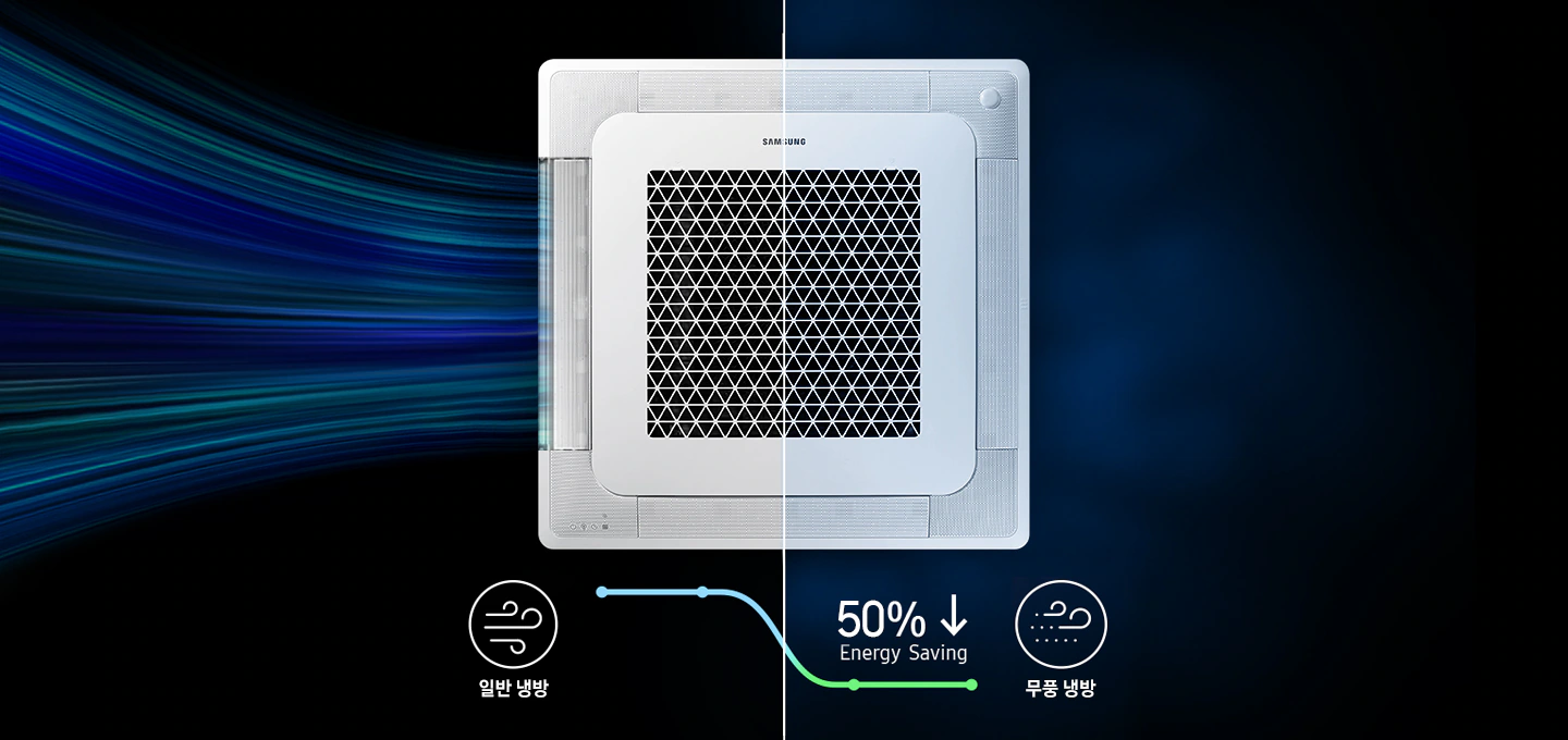 인감지 센서와 무풍냉방으로 최대 50 % 에너지 절감을 실현합니다.
