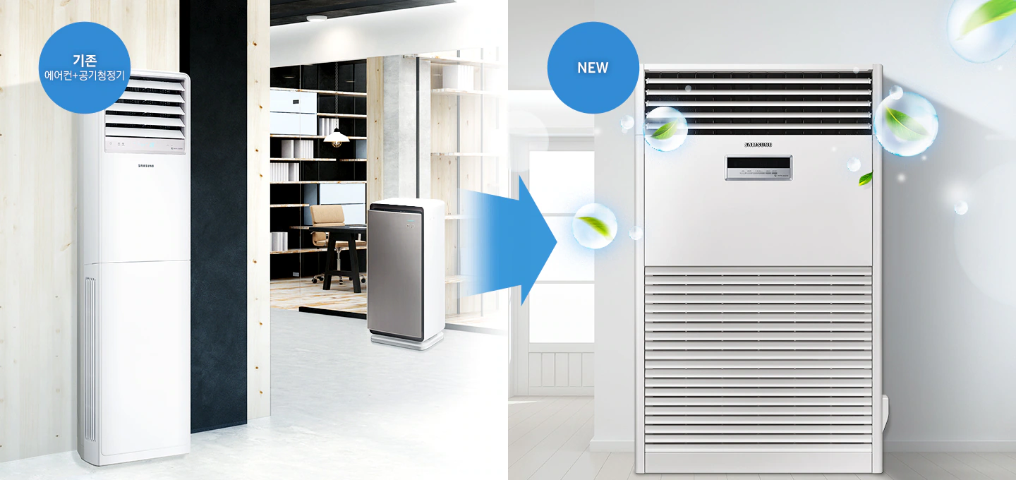 국내 최초로 출시된 중대형에어컨용 공기청정 KIT로 에어컨 한대로 냉난방과 실내 공기질 관리가 가능합니다.