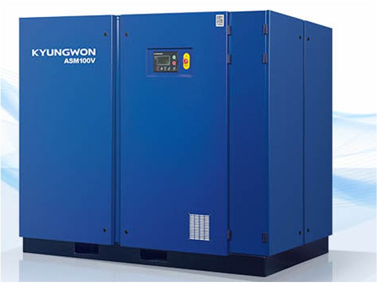 오일이 압축 과정 중 사용되는 스크류 타입 공기압축기.