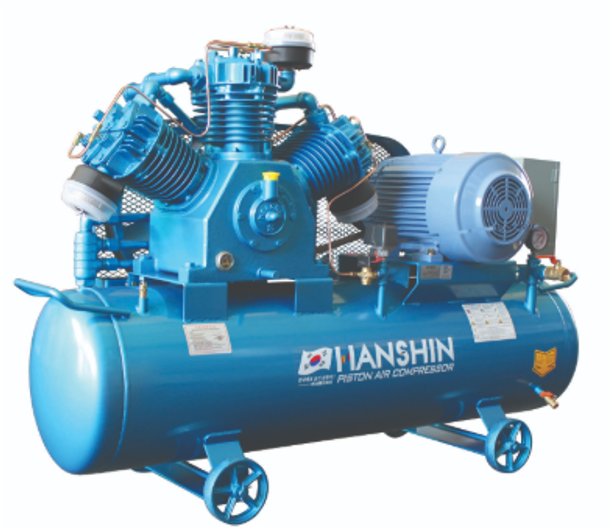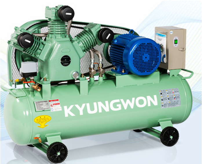 압축 과정에서 윤활유를 사용하는 왕복동 방식의 공기압축기. 피스톤과 실린더 사이에 오일이 사용되어 마찰을 줄임 |