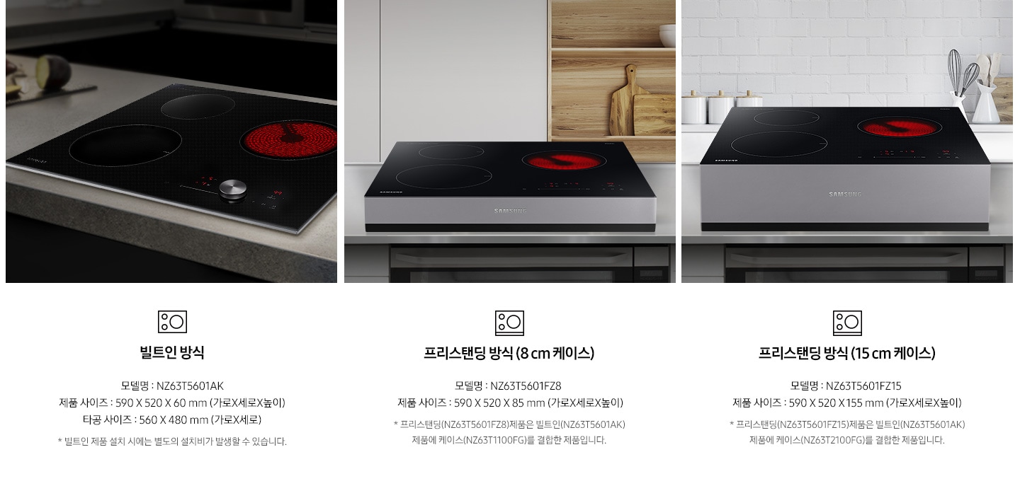 주방 스타일에 따라 가구에 따라 설치가 편리한 프리스탠딩 방식이나 주방이 더욱 깔끔해지는 빌트인 방식으로 설치가 가능합니다.